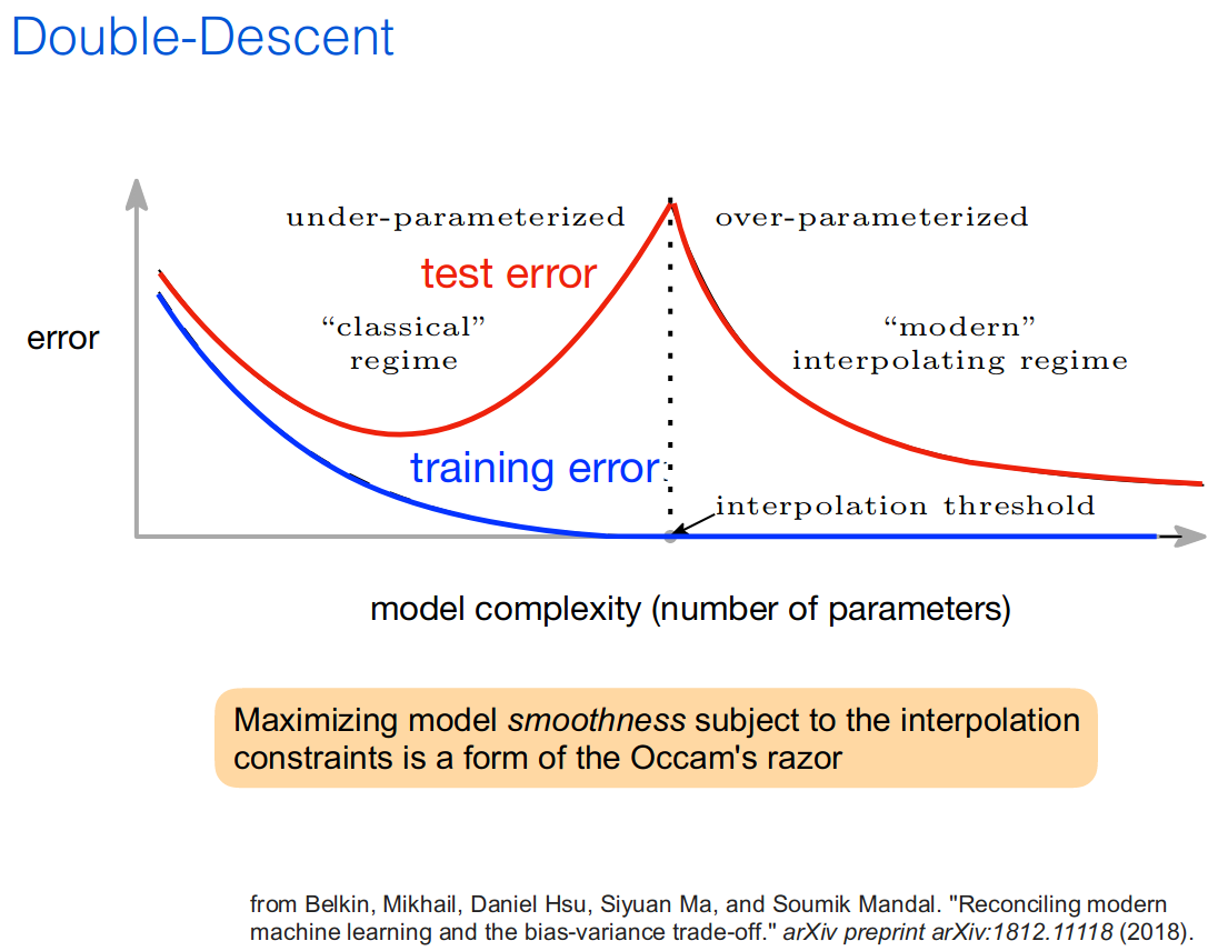 - I attended this tutorial as I find that Active Learning is highly relevant for a practitioner. Active Learning aims to train machines with less labeled data and less human supervision. What not to like? If you are someone who spent countless hours labeling with various tricks some niche data, you will understand. Active Learning gathers a set of techniques and theories on how machine can automatically and adaptively selects the most informative data for labeling. Thus, the human can only focus on the data points that ‘matter’ for improving the machine learning model. Baseline for this field is the ‘no labeling strategy’, that is sample at random (uniformly) points to label. An active strategy would be to present the labeler with points that are near the best decision boundary given the points labeled so far. Prof. Nowak mentioned Hierarchical Clustering as a way to do some active learning, idea coming from an ‘old’ paper I wasn’t aware of. I used similar techniques (hierarchical clustering and flat clustering for labeling), which are quite natural ideas, in the past but without much theoretical understanding. I’ll look into the details. More thought provoking were the slides 9-12 of part 4 of the tutorial. Basically, in the classic standard textbooks on statistical learning you are told quickly about the bias-variance trade-off, and you can see the following picture everywhere: