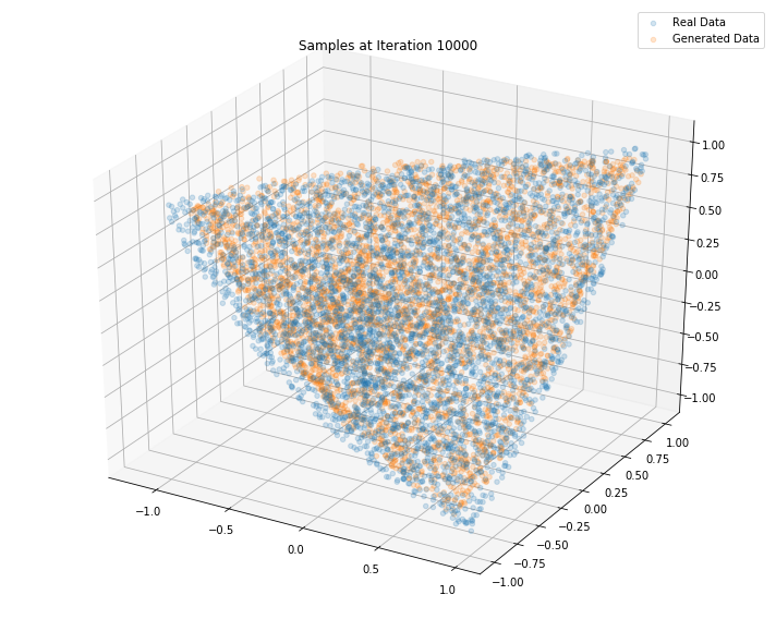 Iterations: 10000 Discriminator loss: 1.3806 Generator loss: 0.7006