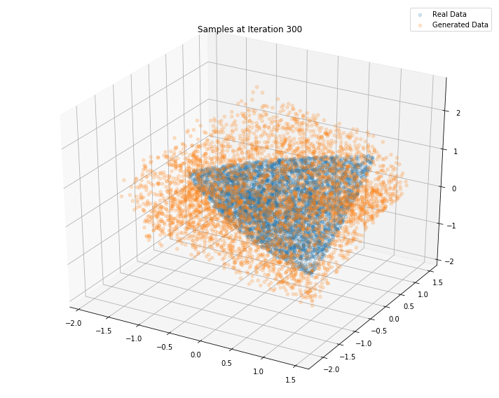 Iterations: 300 Discriminator loss: 1.3710 Generator loss: 0.8039