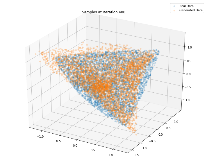 Conclusion: This simple GAN is quite useless in practice as it learns how to sample from a distribution for which we already have a good sampling algorithm, namely the onion method. However, it is an interesting exercise to see what it takes to replicate it with a GAN approach. Since successful, we envision to sample from much more complex distributions such as the distribution of “empirical financial correlation matrices” for which no sampling algorithms are known.