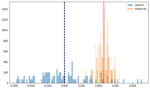 plt.axvline(x=np.mean(mean_unif_pf), color='b', linestyle='dashed', linewidth=2)