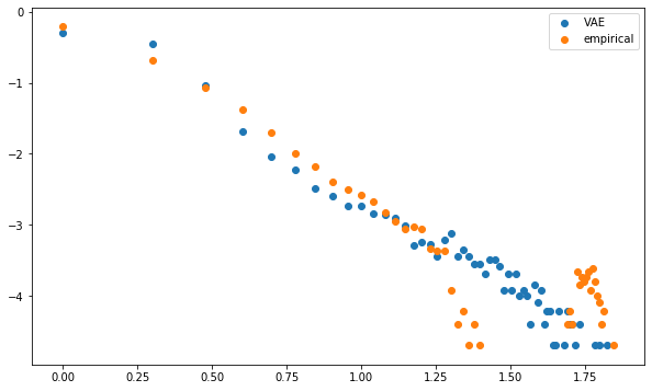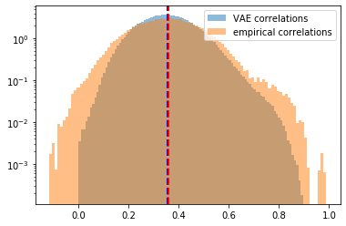 density=True, log=True, label='VAE correlations')