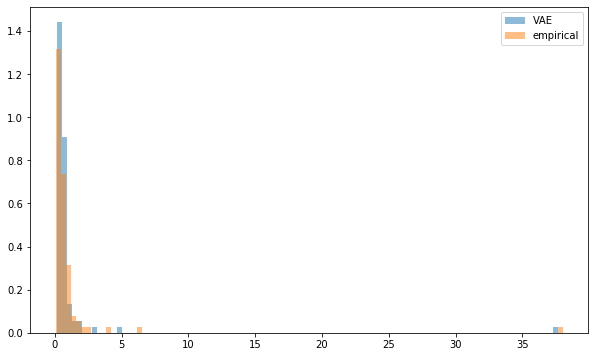 density=True, alpha=0.5, label='VAE')