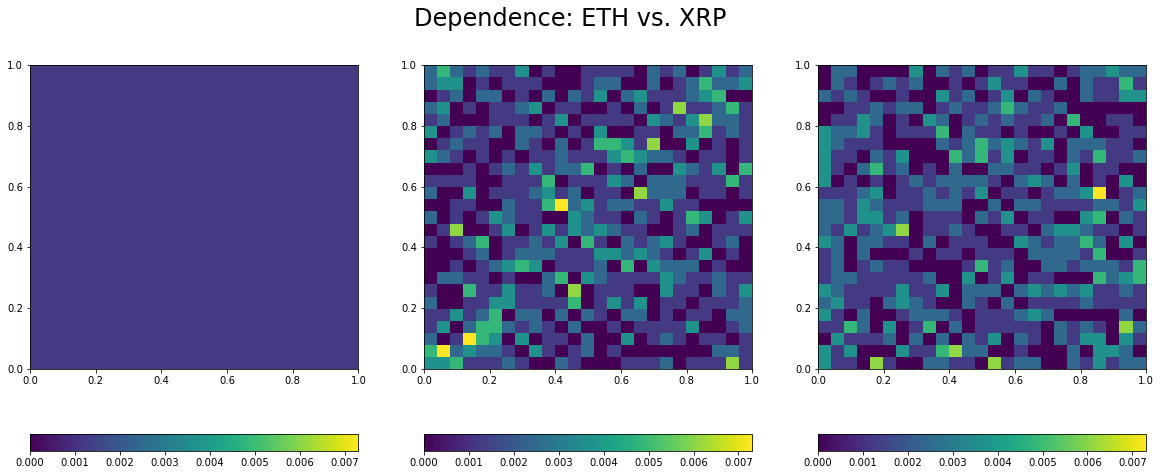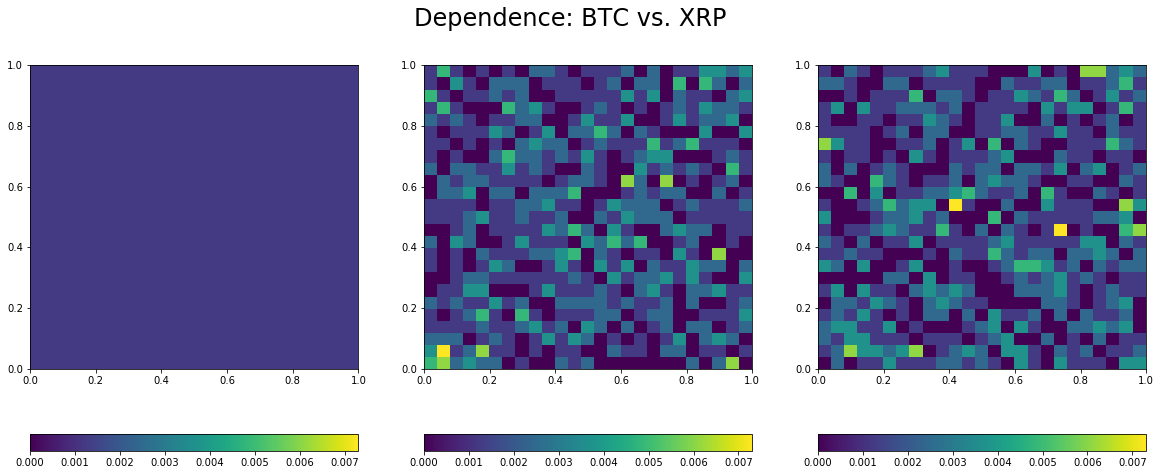 In this blog, we provide a snippet of code to explore the dependence between two variables. We illustrate its use on visualizing the dependence between a few of the main cryptocurrencies: Bitcoin (BTC), Litecoin (LTC), Ether (ETH) and Ripple (XRP).